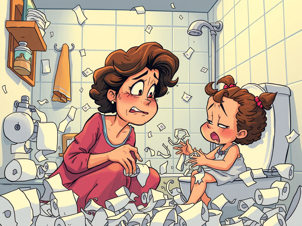I had my 8-month-old balanced on one leg, was actively fighting off a blizzard of shredded toilet paper, and somehow—despite living with three boys and a husband—managed to sit in someone else’s pee.
